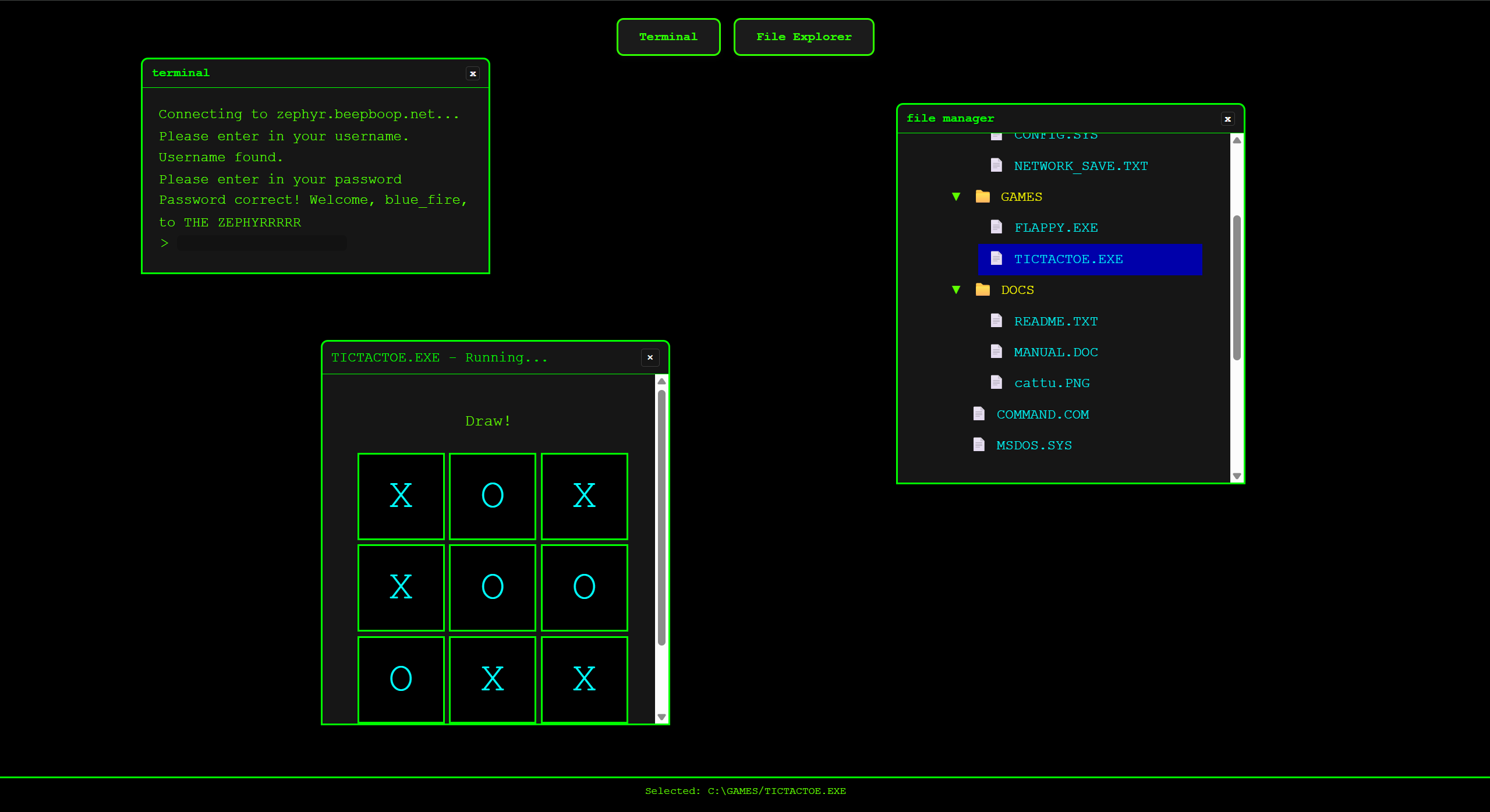 whiskerBBS is a bulletin board system where users can send and read messages, transfer files, and play games. built in python.